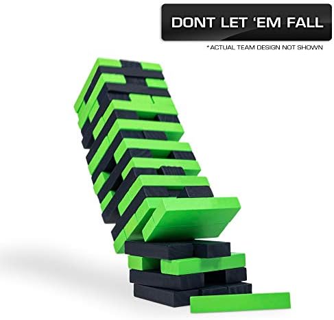A CLASSIC JENGA GAME, IN YOUR FAVORITE NFL TEAMS – A wooden block game that challenges players to push and pull stacking blocks from the tower and strategically place them back on top. Last player standing without knocking the tower down, WINS.