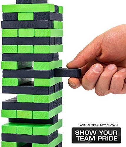 Wild Sports NFL Licensed Tabletop Stackers Tower-Building Block Game – 54pcs Wooden Block Stacking Games – Classic Family Games & Party Games for Rec Room, Game Room & NFL Games Tailgate Party